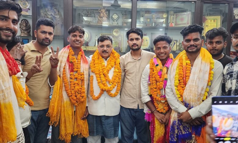 रुद्रपुर – सरदार भगत सिंह राजकीय स्नातकोत्तर महाविद्यालय रुद्रपुर में छात्रसंघ चुनाव में अध्यक्ष, सचिव एवं विश्वविद्यालय प्रतिनिधि पदों पर ऐतिहासिक जीत दर्ज करने के बाद नवनिर्वाचित अध्यक्ष रजत सिंह बिष्ट, सचिव जसवंत सिंह एवं विश्वविद्यालय प्रतिनिधि मोहित चंद्र भट्ट अपने सैकड़ों समर्थको के साथ पूर्व विधायक राजेश शुक्ला के आवास पर पहुंचकर उनका आशीर्वाद प्राप्त किया।